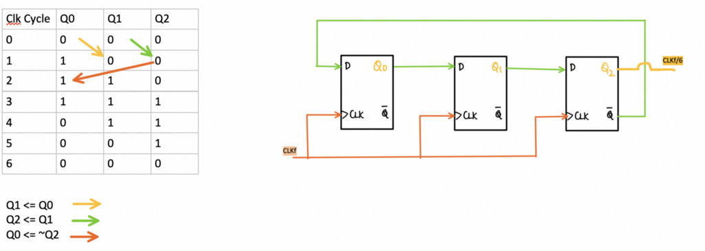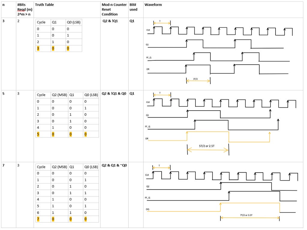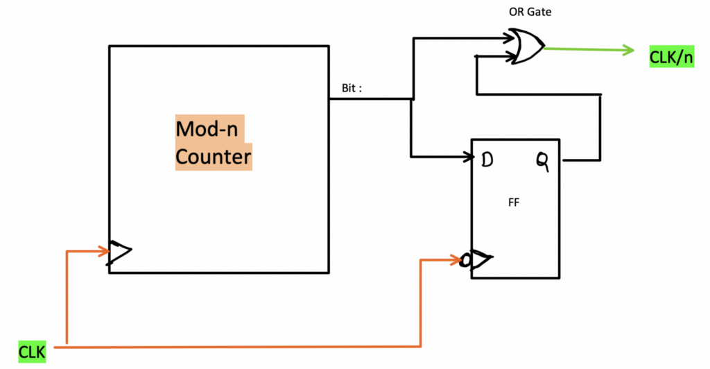Say, the highest divisor is 8 from the above example, you’ll need 2^n>8. In this case, n = 4. For this case, counters can be any type of implementation — synchronous/asynchronous.