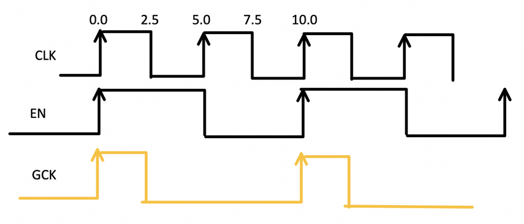 However, if EN signal is CLK/2 , the generated clock will be a pulse clock as shown below